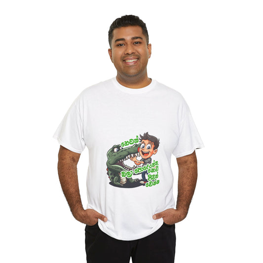 ‘ආතල් ලොකෙ ජීවය සැපදෙ’ – ‘A life full of fun brings comfort’ - Unisex cotton tee